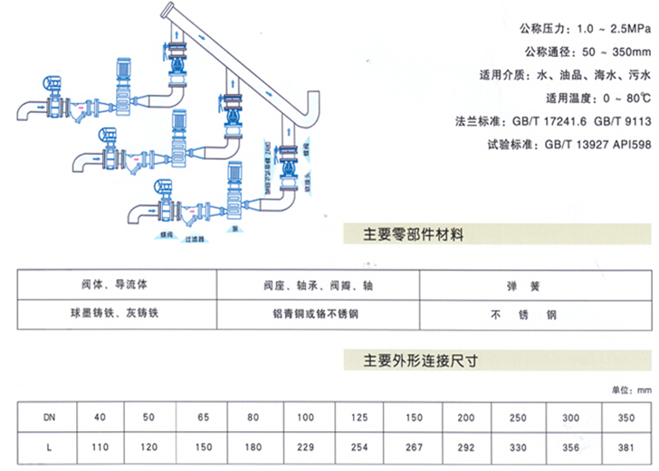 DRVZ靜音式止回閥主要由閥體、閥座、導(dǎo)流體、閥瓣、軸承及彈簧等主要零件組成,內(nèi)部流道采用流線型設(shè)計(jì),壓力損失小。