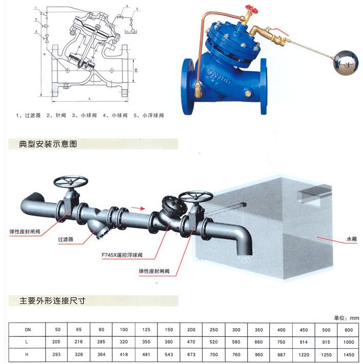 本閥門安裝在水塔、水池的進(jìn)口端管路上,完成保持水塔、水池液面的規(guī)定高度的功能。
